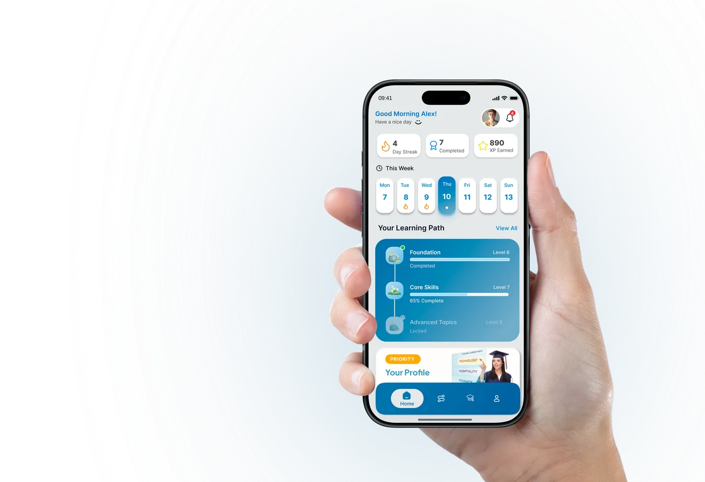 A step-by-step timeline that adapts to your goals, from skill building through to university preparation.